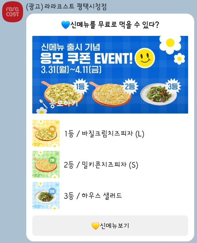 “라라코스트 신메뉴 출시 응모 쿠폰 이벤트”